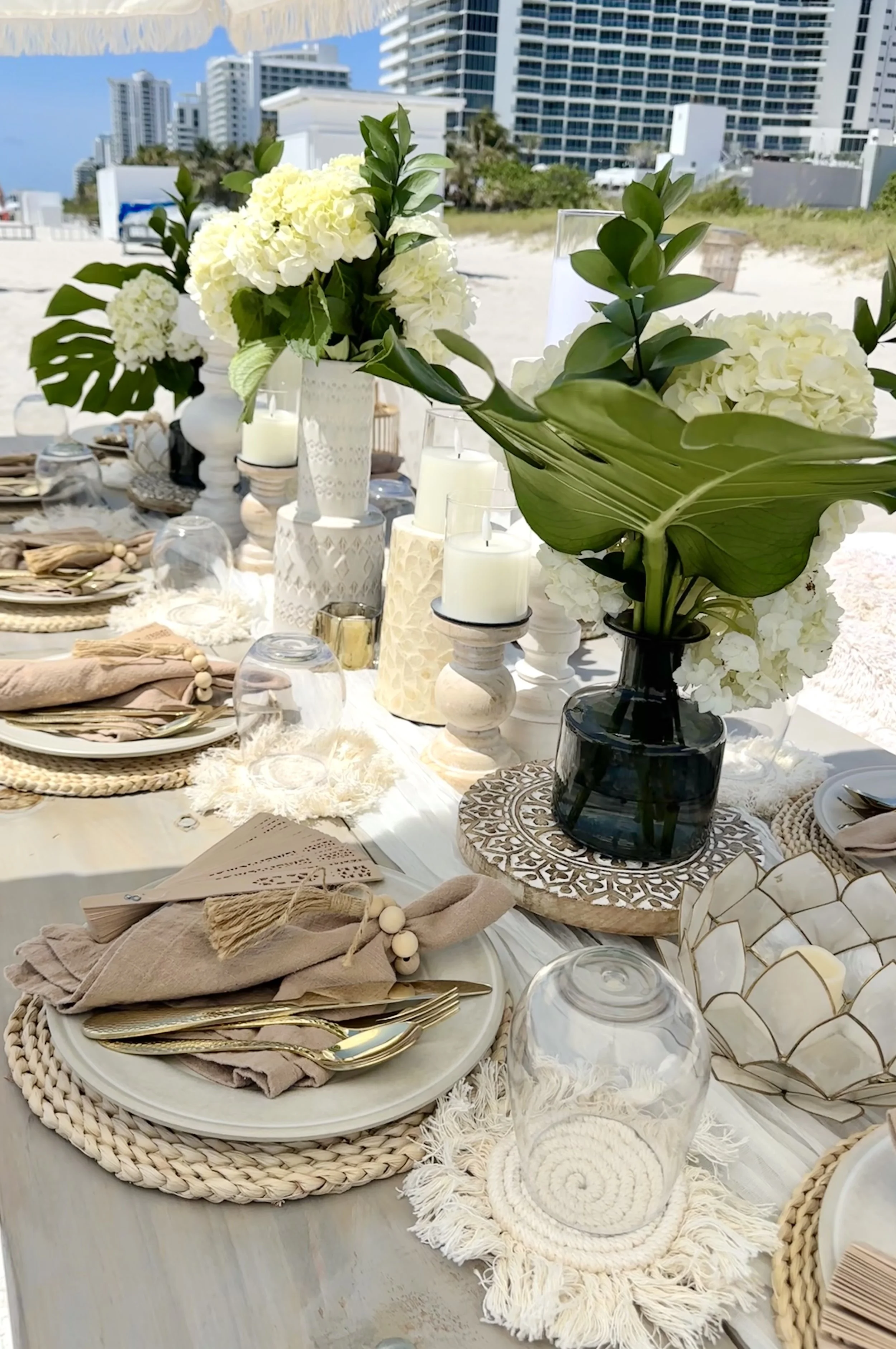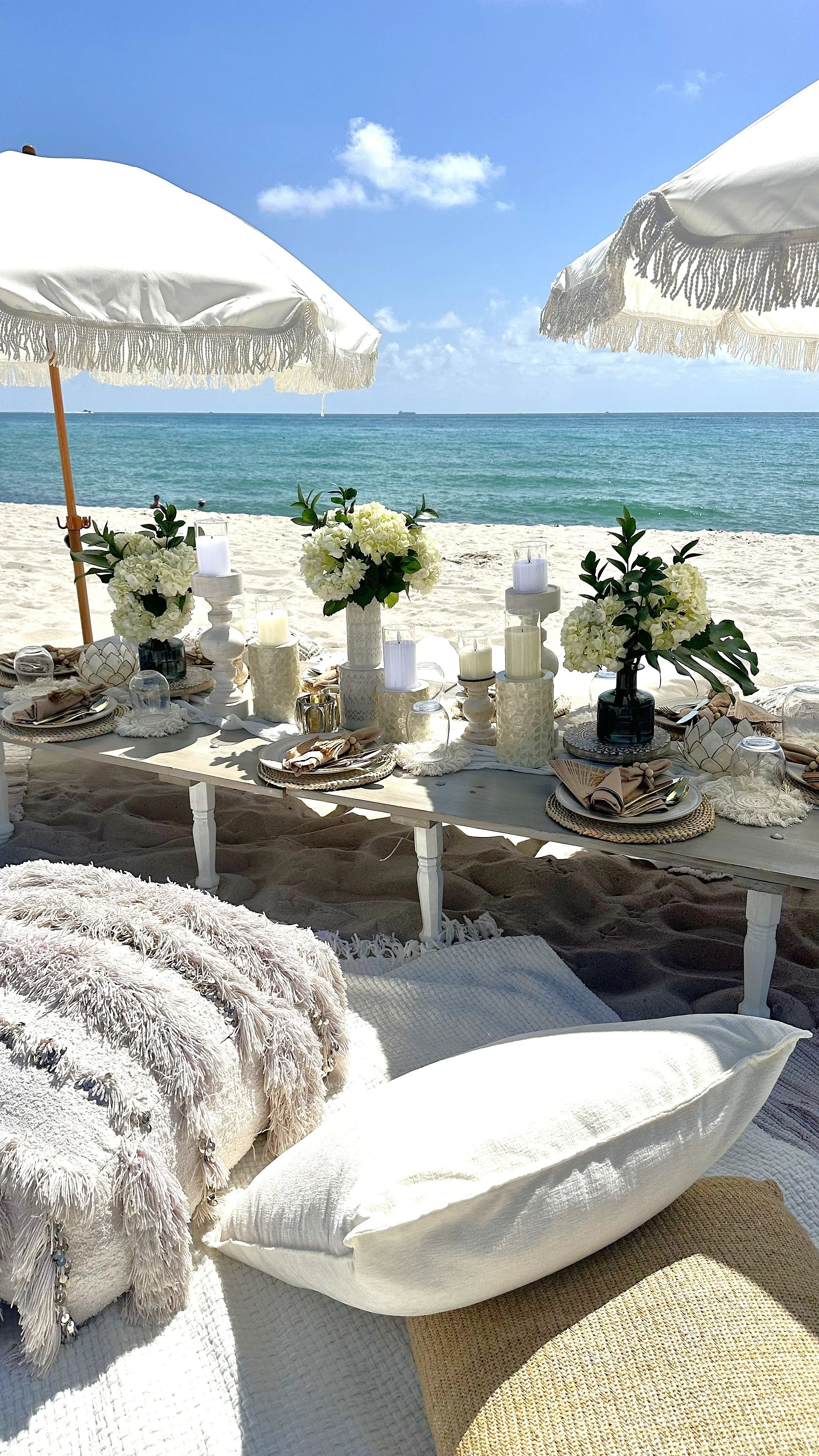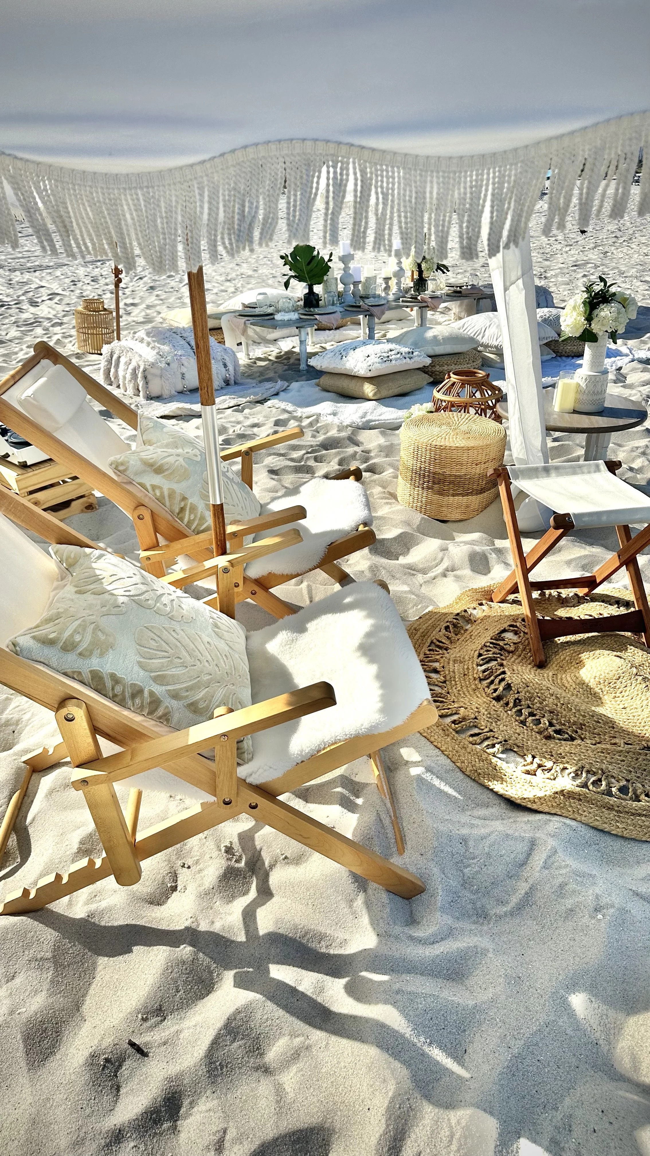 This customizable 3-hour tropical island picnic setup is the perfect mix of natural elements and nomad style - inspired by our favorite beach meccas like Bali and Ibiza, the white and ivory design suits any special event, from bridal showers, bachelorettes, and casual elopements to micro weddings, special anniversaries and milestone birthdays. Upgrade with beach chairs for added comfort, shaded catering table for a buffet (catering not included), or a fourth hour to create a complete beach day. Please note - we do not provide coolers for large groups.