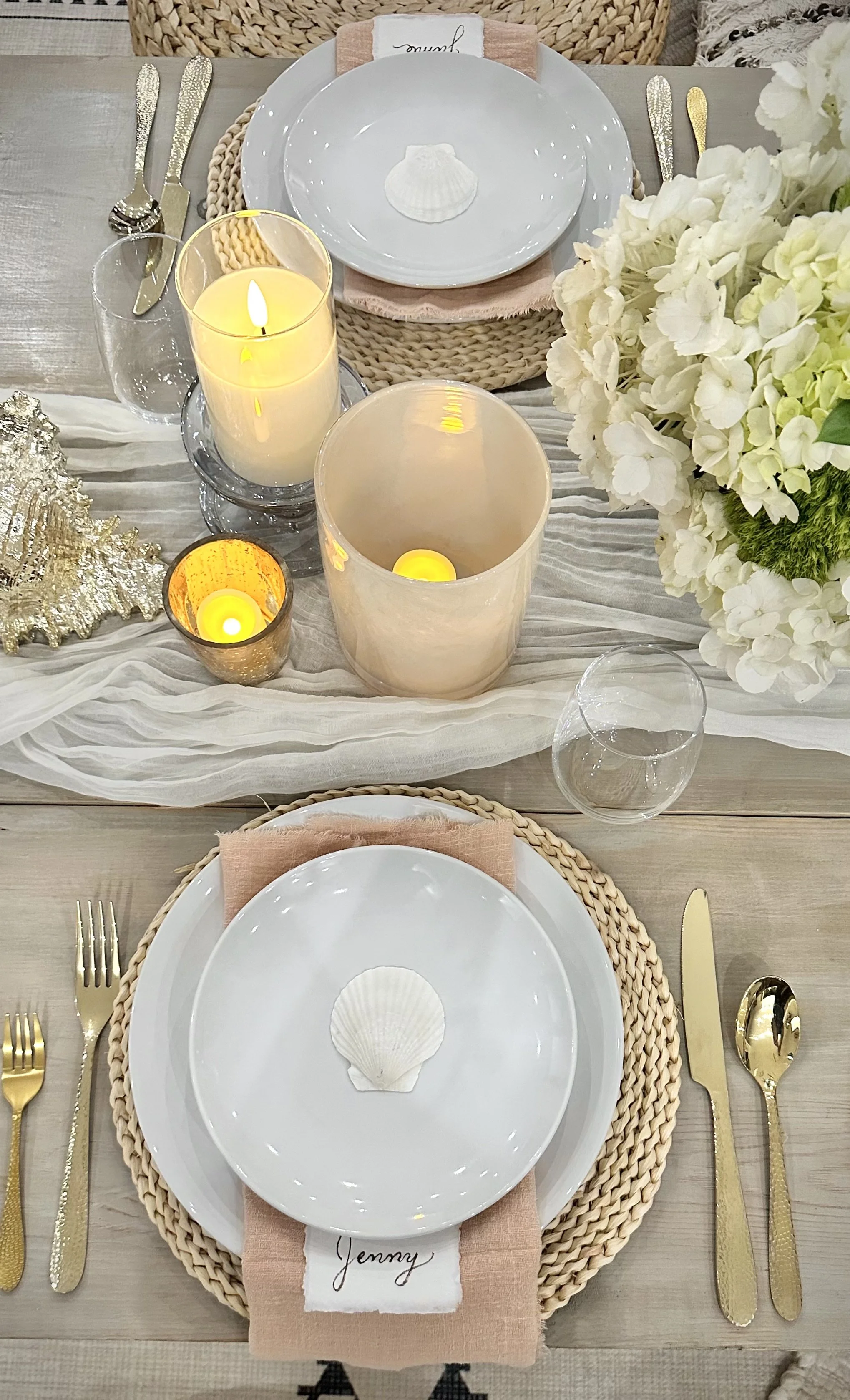 Dinner Plates, Flatware, Fabric Napkins, Placemats, and Glasses