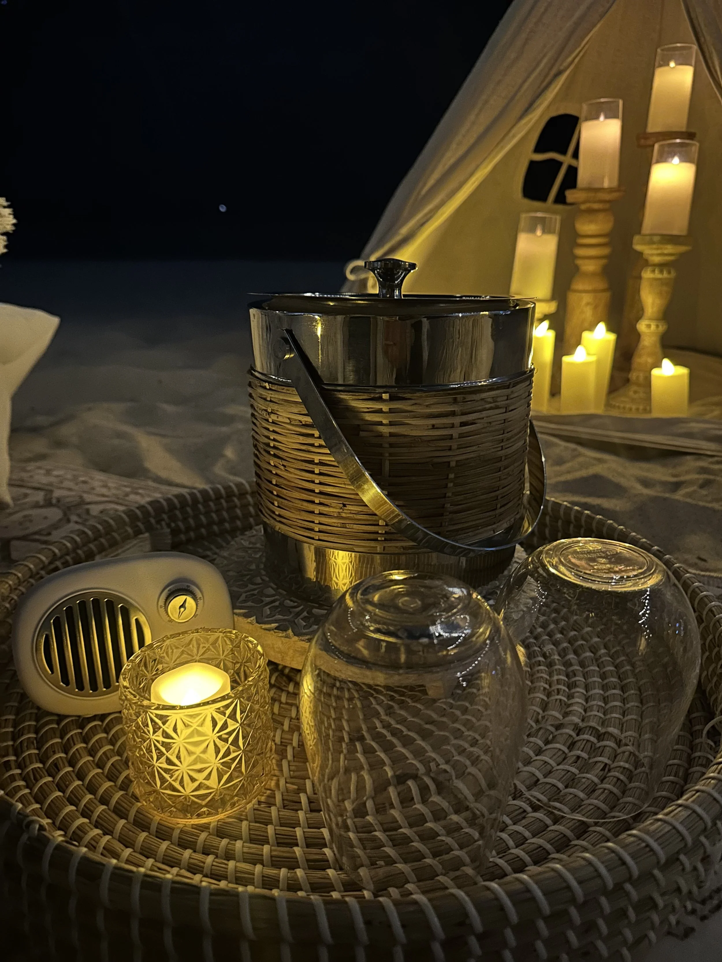 Canvas Teepee Backdrop with Pillar Candles