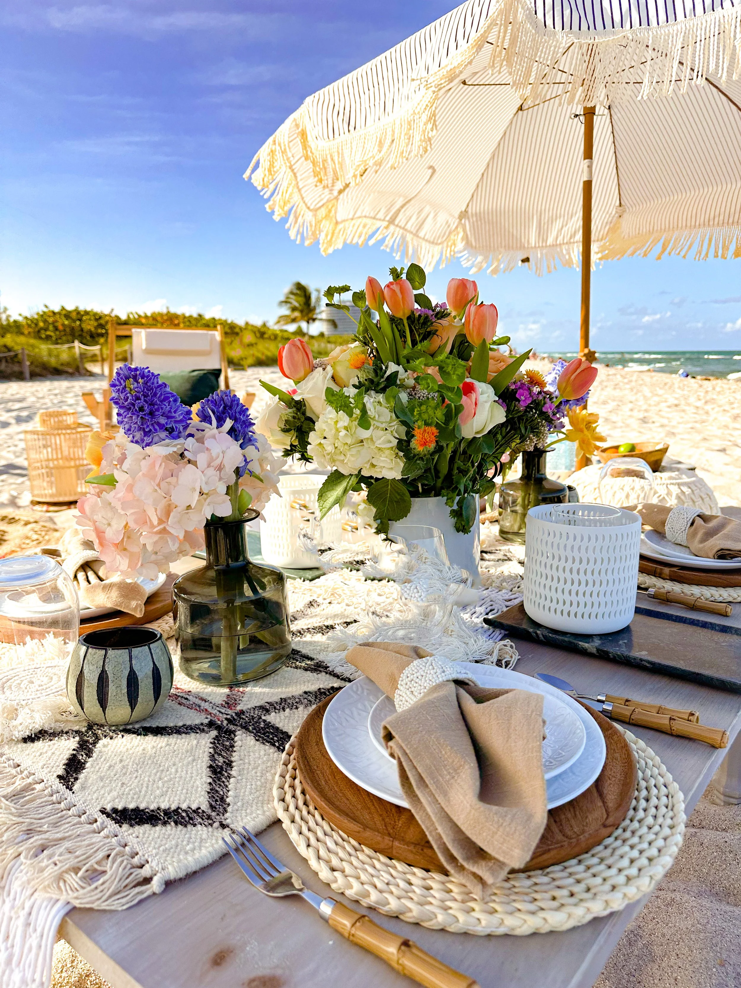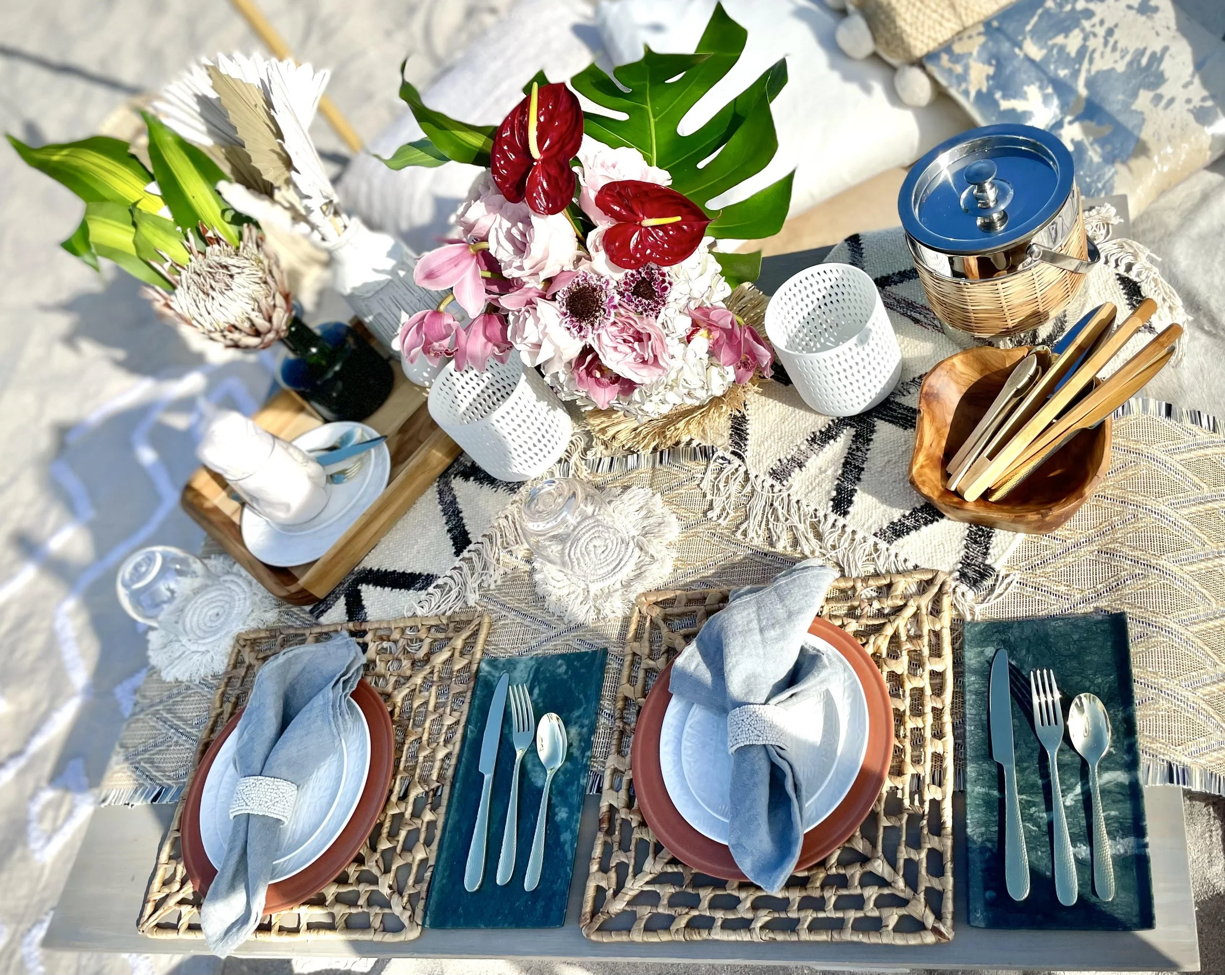 Riviera Maya’s raw aesthetic intense blooms meet the tropical greens of Mexico’s Yucatan. Jungle jades and modern ceramic make a sophisticated contrast against terra cotta motifs and rustic serapes - perfect for a fun birthday picnic or Miami staycation.